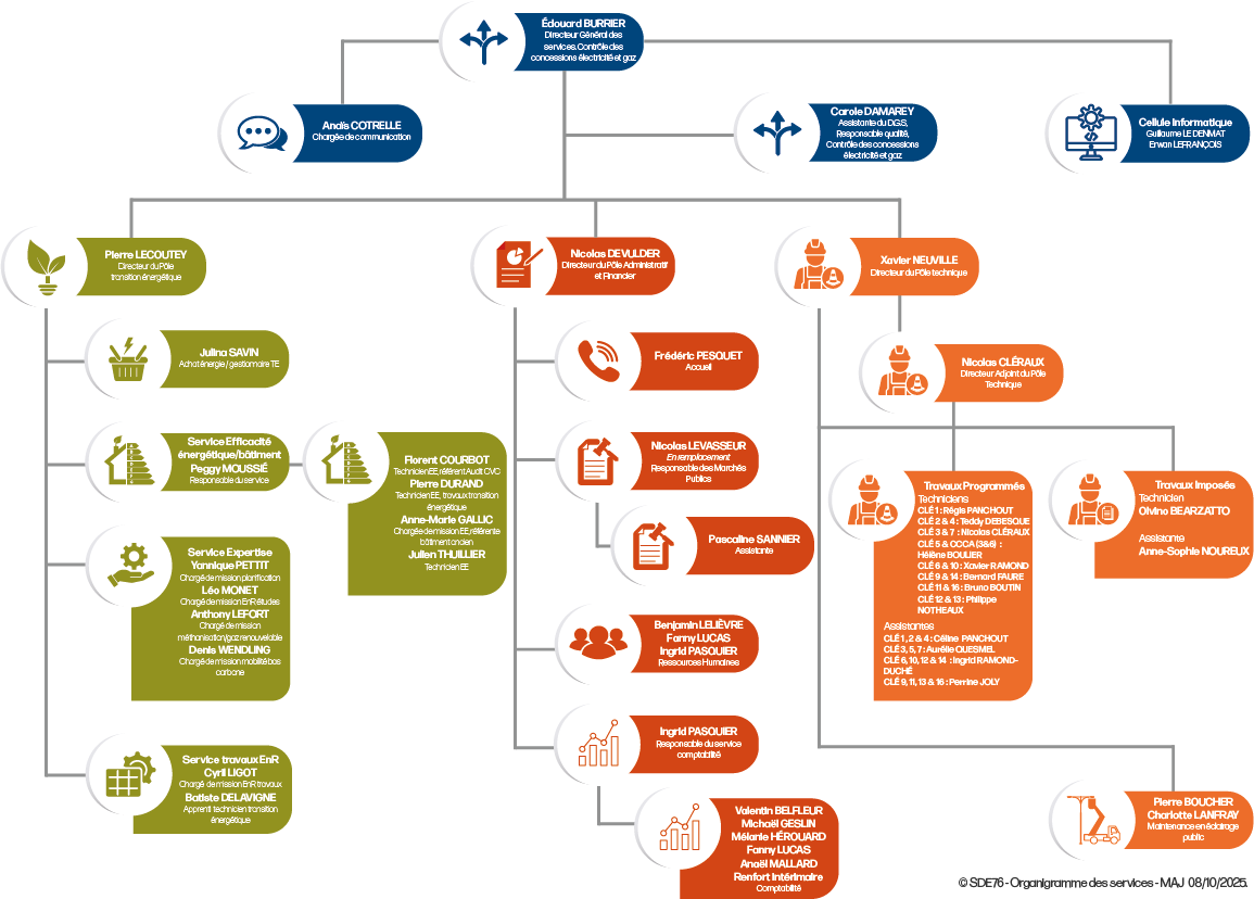 Le SDE76 est composé de 46 agents à votre service. Vous retrouverez leurs coordonnées ci-dessous.